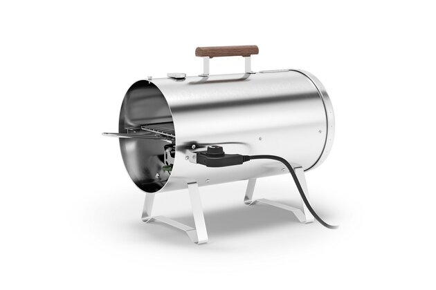 Výkonná udírna z nerezové oceli s plynule nastavitelnou teplotou a vestavěným teploměrem. Součástí balení jsou dva prostorné rošty, které umožňují udit maso, ryby, drůbež, sýr, zeleninu nebo dezerty. Víko udírny lze při vyjímání roštu pohodlně zavěsit na rukojeť.