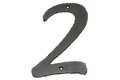 Ručně kovaná poznávací číslice domu vyrobená z černé lakované oceli.