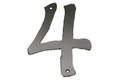 Ručně kovaná poznávací číslice domu vyrobená z černé lakované oceli.