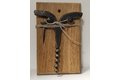 Ručně kovaný otvírák na víno vyrobený z černé oceli na dubovém rámečku k zavěšení.