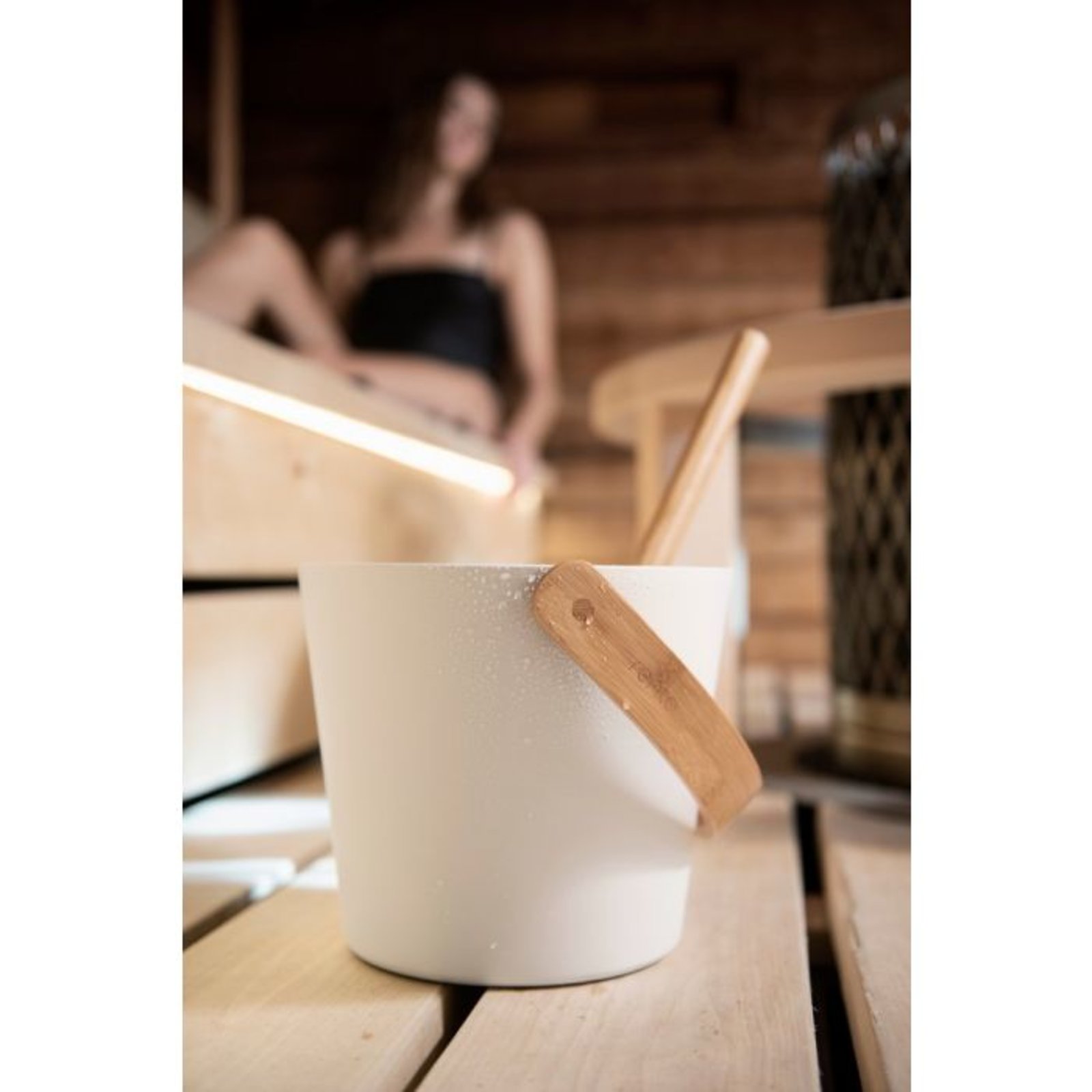HLINÍKOVÉ VĚDRO S BAMBUSOVÝM KULATÝM ÚCHYTEM, bílé